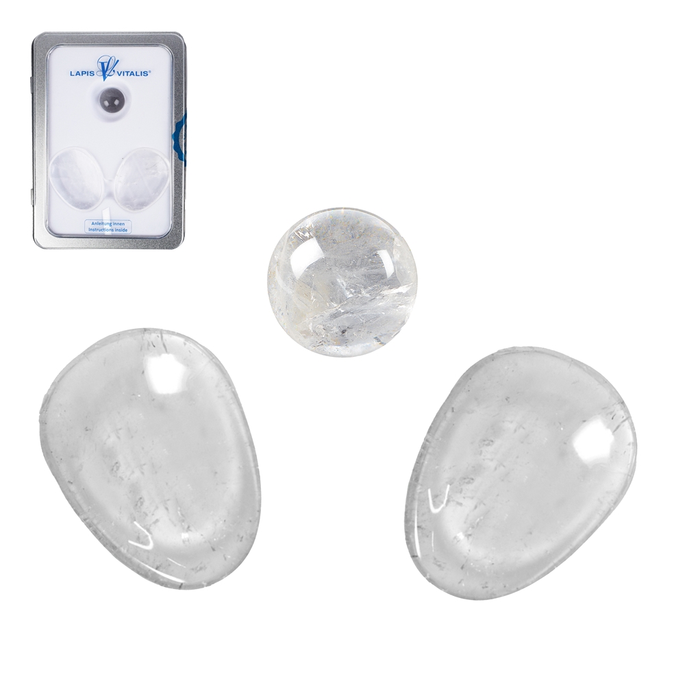 Prachtige set van 2 hol geslepen bergkristal stenen plus een extra ronde zeer zuivere bergkristal steen voor massage.